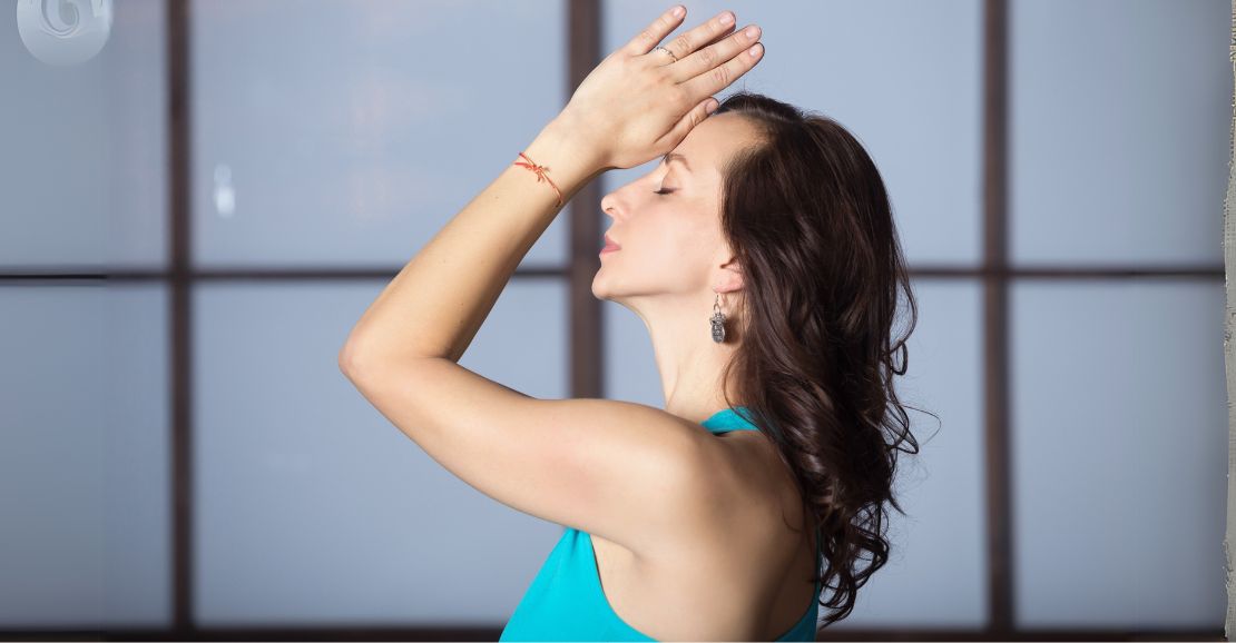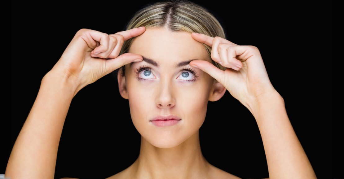 - How to do it: Rest your fingertips above your eyebrows.